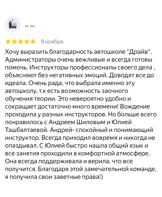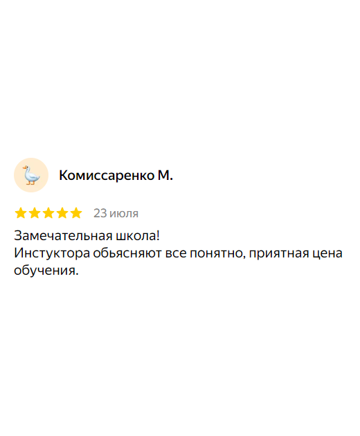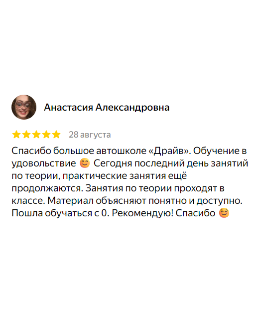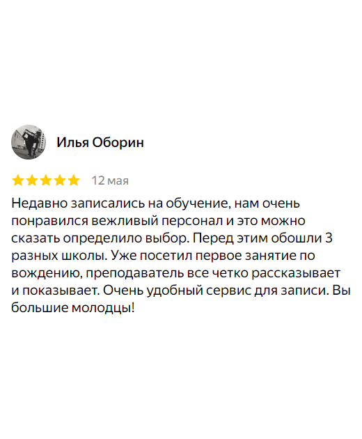 Возможность выбора гибкого расписания для теории и вождения, включая индивидуальные занятия.